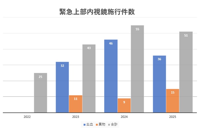 潰瘍などによる活動性の消化管出血を止血する場合や、高齢者、小児が異物を飲み込んで摘出する必要がある場合に、治療目的に緊急で行う内視鏡検査・処置です。