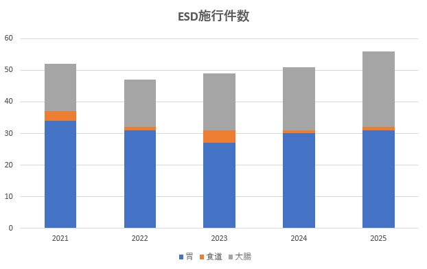 通常の検査としては上部・下部の内視鏡検査を行なっております。また、膵・胆道疾患に対する内視鏡的治療や、肝腫瘍に対するラジオ波焼灼療法などの内科的治療、食道・胃・大腸の粘膜内癌に対する内視鏡的粘膜下層剥離術(ESD)を積極的に行っています。